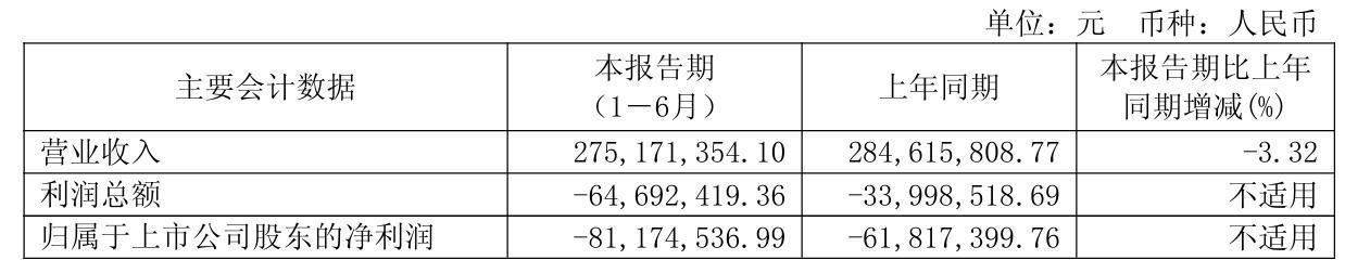 2025年上半年,公司营业收入为2.75亿元,同比下降3.3%;归母净利润自去年同期亏损6182万元变为亏损8117万元,亏损额进一步扩大。
