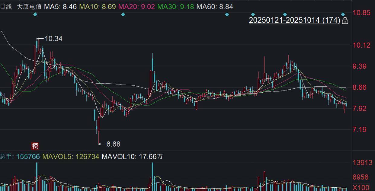 二级市场上,截至14日收盘,大唐电信下跌0.62%报8元/股,总市值104.29亿元,今年来公司股价累计下跌约7%。